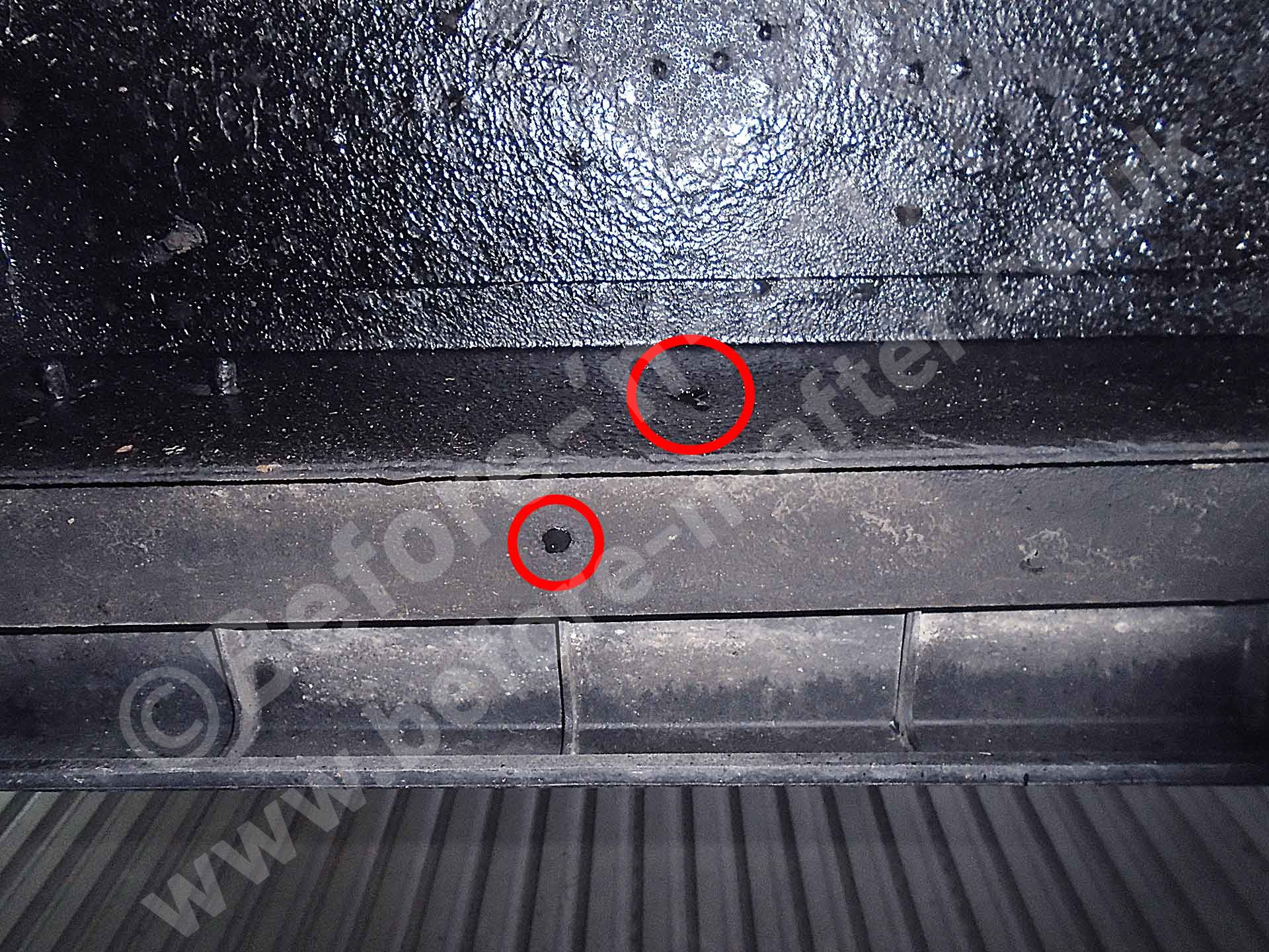 Before 'n' After rusproofing. Since 1987 (Ex Newbury 1999 to 2008). Now near Rugby (2 miles from junction 2 of M6). Borrow our courtesy car and have a great day out while we rustproof your vehicle.