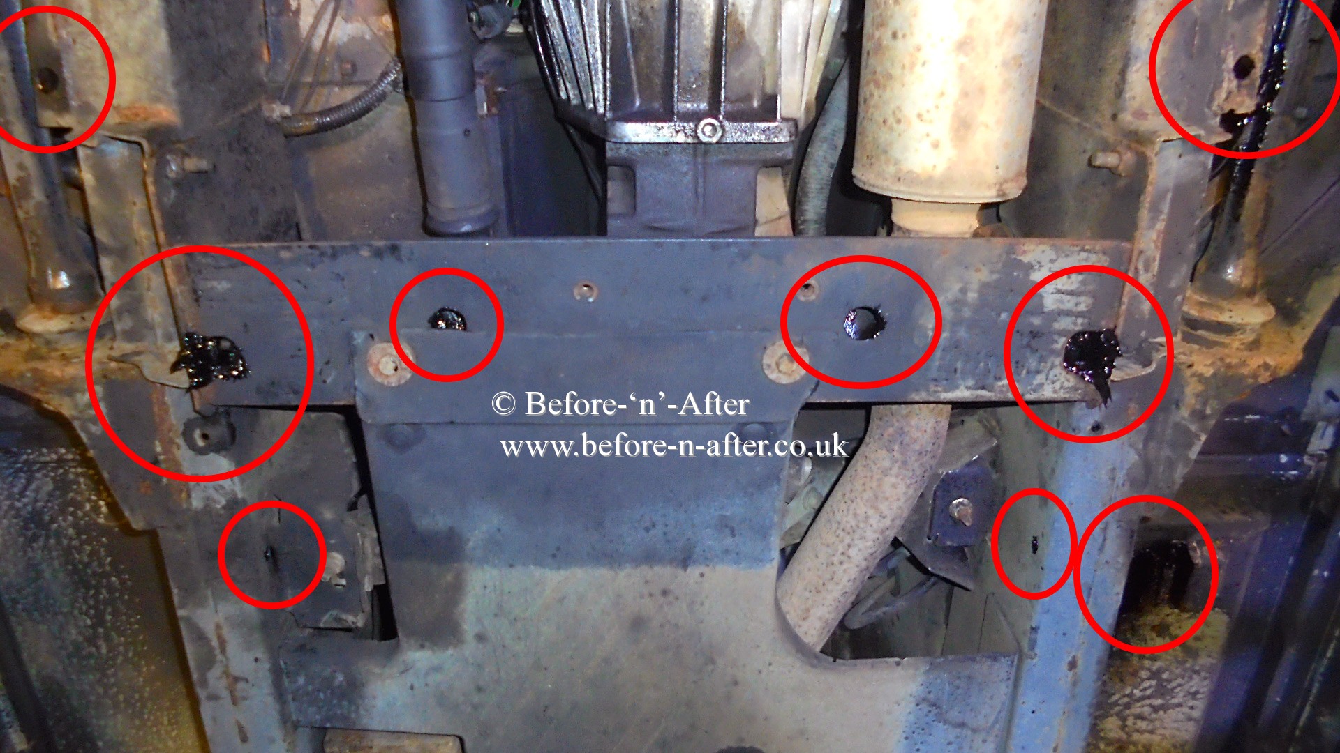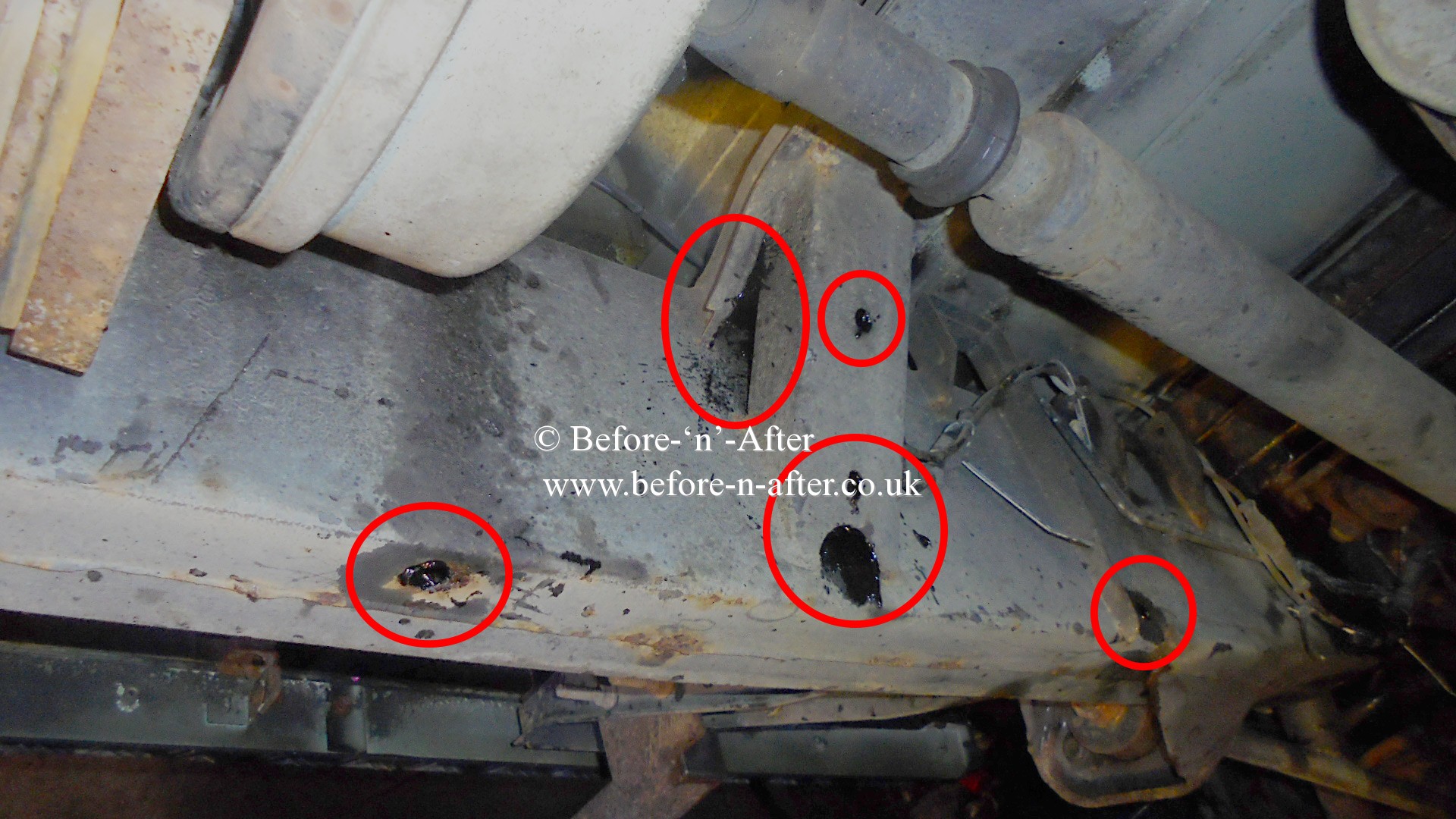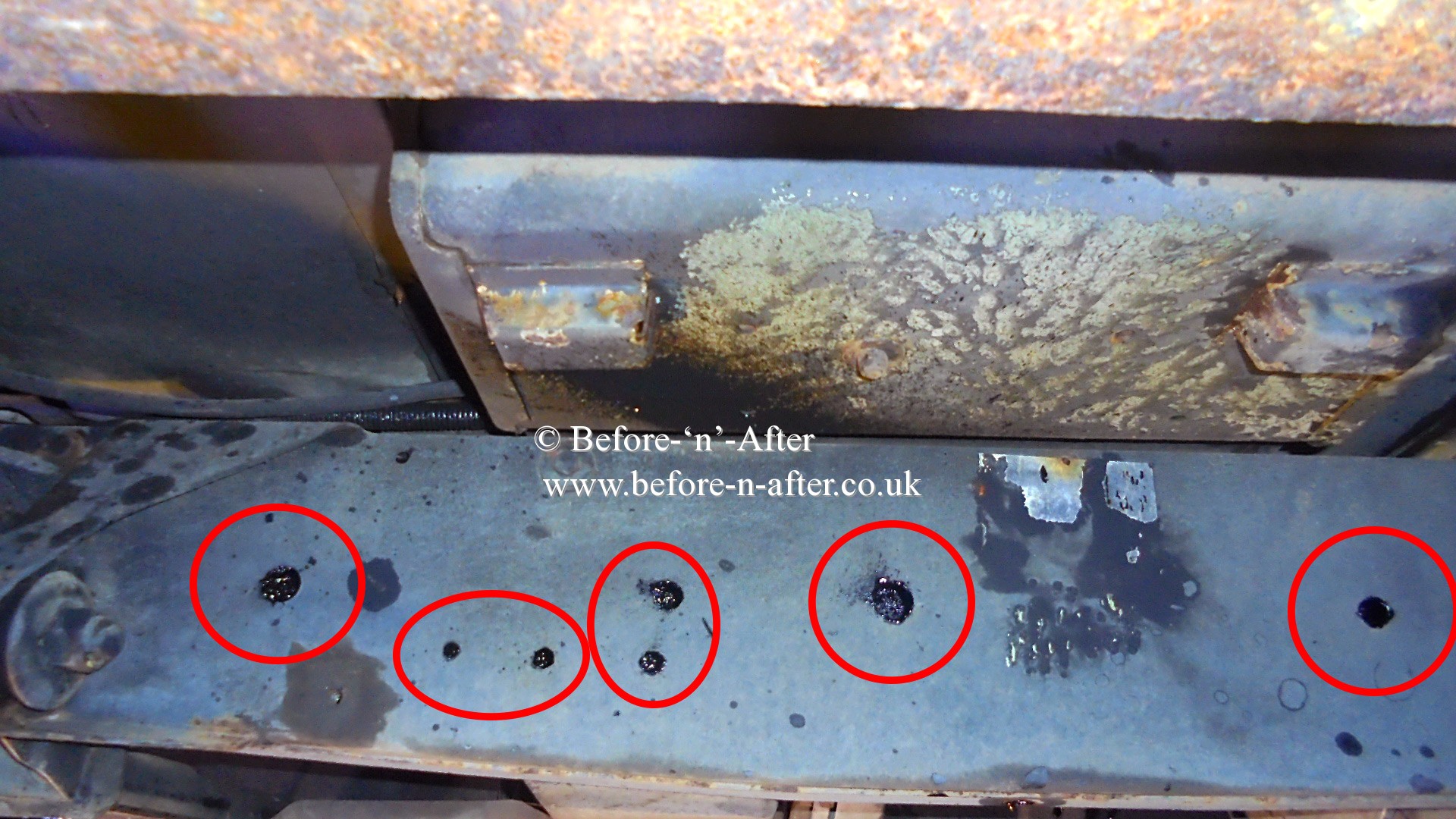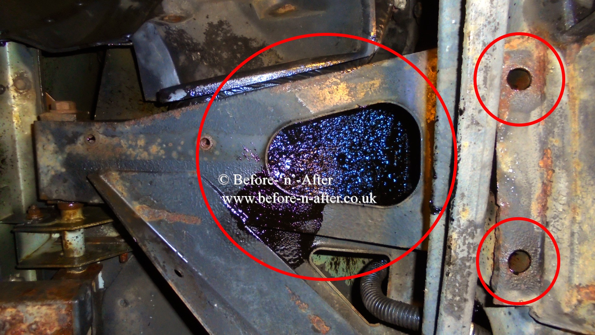 Before 'n' After rusproofing. Since 1987 (Ex Newbury 1999 to 2008). Now near Rugby (2 miles from junction 2 of M6). Borrow our courtesy car and have a great day out while we rustproof your vehicle.