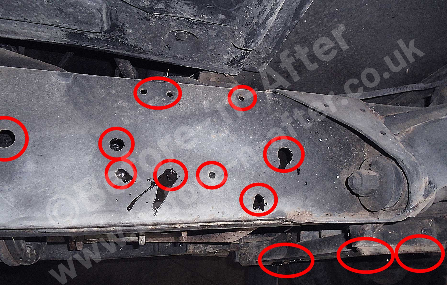 Before 'n' After rusproofing. Since 1987 (Ex Newbury 1999 to 2008). Now near Rugby (2 miles from junction 2 of M6). Borrow our courtesy car and have a great day out while we rustproof your vehicle.