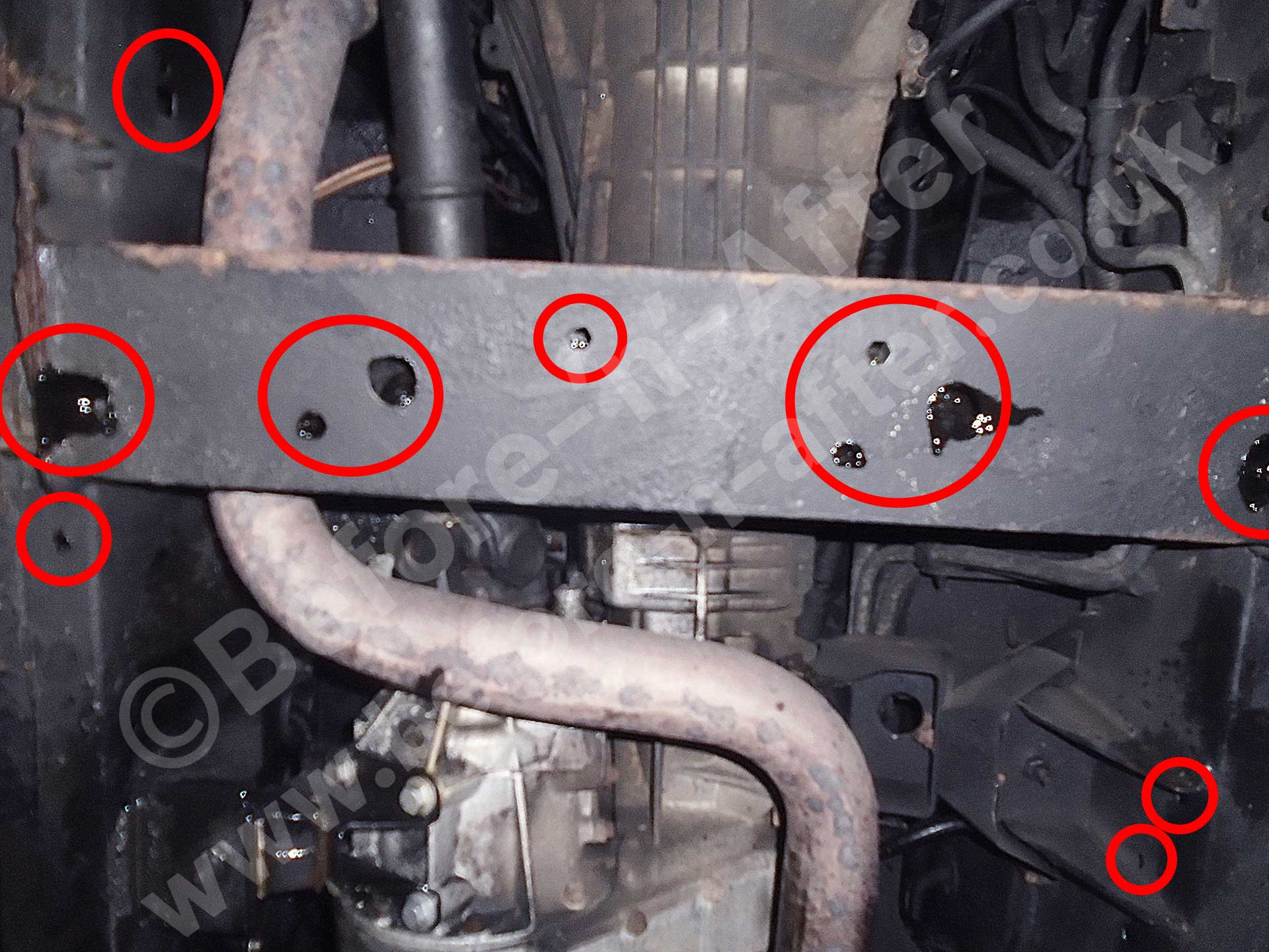 Before 'n' After rusproofing. Since 1987 (Ex Newbury 1999 to 2008). Now near Rugby (2 miles from junction 2 of M6). Borrow our courtesy car and have a great day out while we rustproof your vehicle.